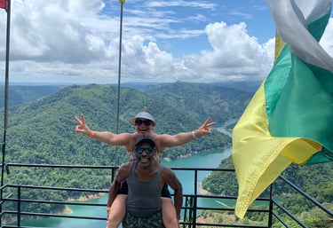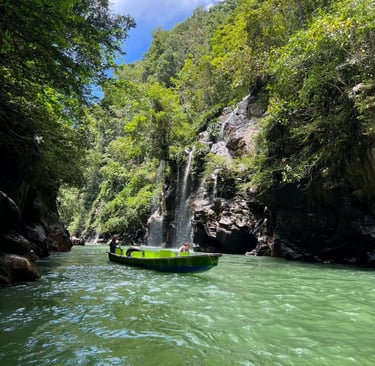 Estamos en Norcasia, Caldas, junto al río La Miel, rodeados de naturaleza para tus aventuras.